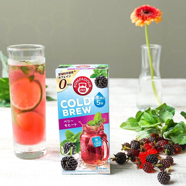 水出し5分でできるポンパドールのコールドブリューで、爽やかなアイスハーブティーを手軽にお楽しみください。