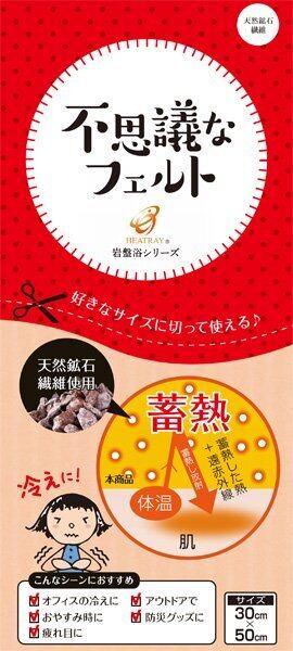 天然鉱石繊維そのものをフェルト状にした、多目的“あたため”素材です。